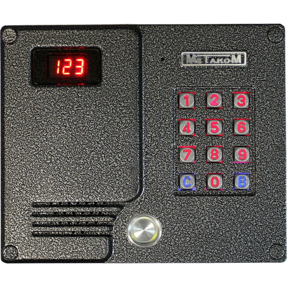 Многоабонентный антивандальный цифровой цветной блок вызова со встроенной видеокамерой METAKOM MK2007-TM4EV, ёмкость до 255 абонентов, трёхразрядный цифровой дисплей, контроллер Touch Memory (ключи типа ТМ2002, ТМ2003, ТМ2004, DS 1990A), индивидуальные коды, свето- и аудиоиндикация режимов работы. Габариты: 180Х150х30. Работа с трубками типа: ТКП-12D.