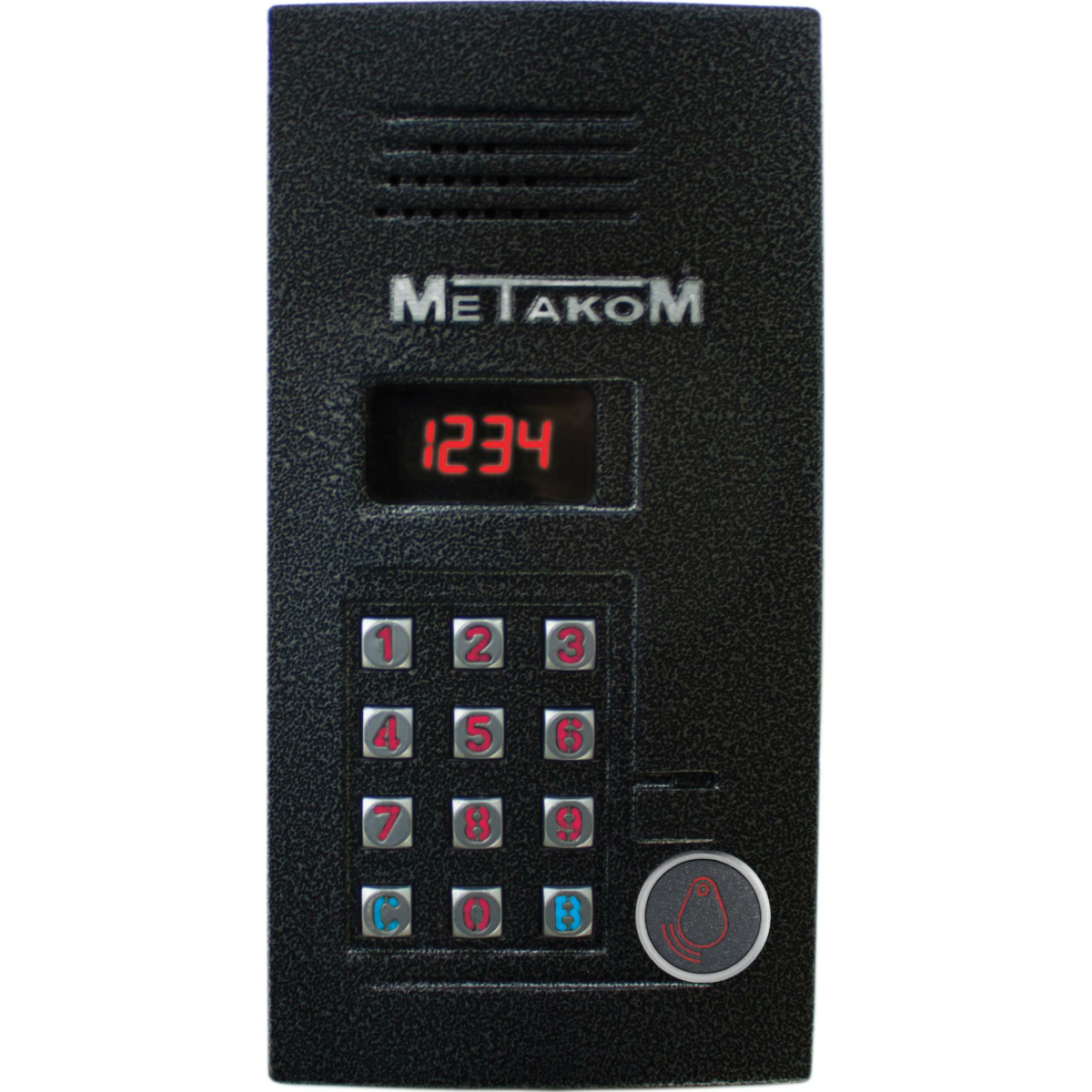 Многоабонентый антивандальный блок вызова МЕТАКОМ MK2012-TM4E, оснащён цветной видеокамерой и инфракрасной подсветкой, емкость абонентов до 999 (при использовании до 15 коммутаторов), возможность переноса базы ключей через микросхему памяти, возможность регулировки громкости вызывного сигнала в абонентском устройстве, задание диапазона обслуживаемых абонентов, возможность организации сети. Оборудован бесконтактным считывателем для ключей RF125P. Габариты: 205x105x40мм.