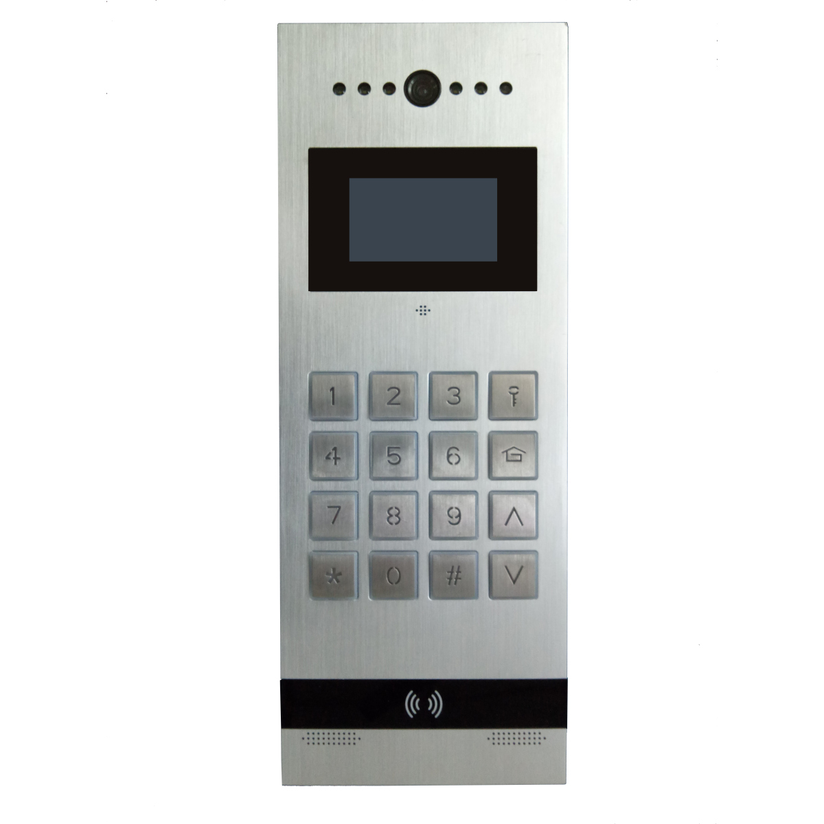 Вызывная панель цветного многоквартирного домофона со встроенным считывателем карт Em-Marin. Выход Wiegand-26. Прочный алюминиевый корпус. Анимированный TFT дисплей. Простое подключение с помощью разъемов RJ-45 (подключение по стандарту T568B). Управление замком. Подключение датчика положения двери. Подключение кнопки выхода. В качестве абонентских устройств используются серийные мониторы серии Classic и аудиотрубки TS-AD Tantos.