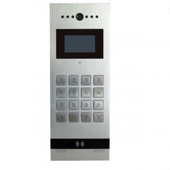 Вызывная панель цветного многоквартирного домофона со встроенным считывателем карт Em-Marin. Прочный алюминиевый корпус. Анимированный TFT дисплей. Простое подключение с помощью разъемов RJ-45 (подключение по стандарту T568B). Управление замком. Подключение датчика положения двери. Подключение кнопки выхода. В качестве абонентских устройств используются серийные мониторы LILU, Amelie, Prime, NEO, LOKI, Tango, Sherlock, Stark и аудиотрубки TS-AD Tantos.