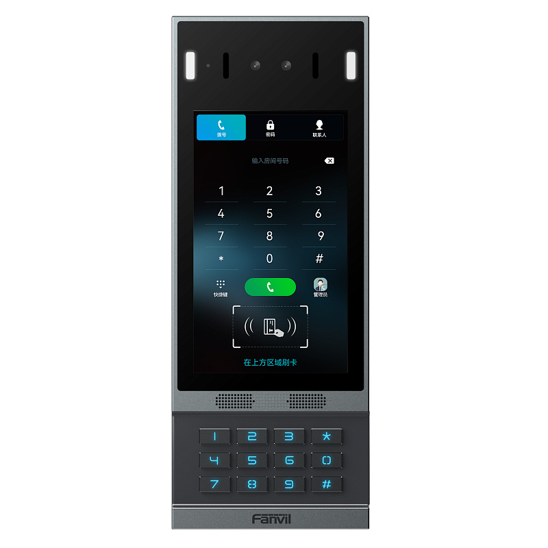 IP-видеодомофон, накладной, IP66, IK07, 16 кнопок, дисплей 7'. 2 SIP-линии. Экран: 7-дюймовый цветной ЖК-дисплей с разрешением 1024x600, сенсорный. Камера: 2 мП. Цифровая клавиатура с синей подсветкой. Поддержка PoE. Открытие двери: DTMF, RFID, NFC, кнопка, с WEB-панели, через API. RFID-карты (до 10 000). Считыватель RFID: 125 кГц и 13,56 МГц. Наличие RS485, Wiegand интерфейсов (Wiegand-26, Wiegand-34). Журнал открытия двери (до 200 000 записей). Поддержка ONVIF. Операционная система: Linux. Внутреннее хранилище базы распознанных лиц (до 10 000)