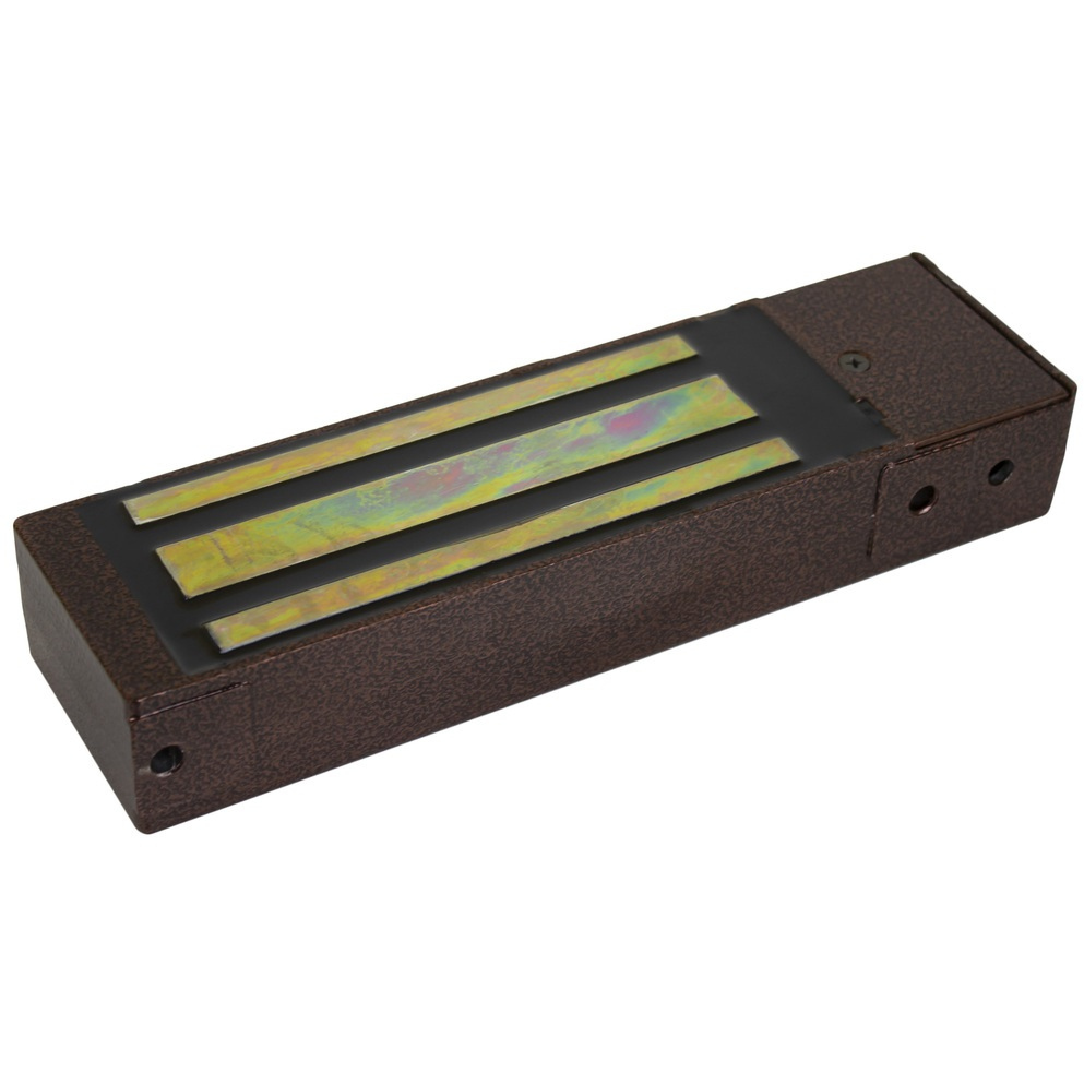 Электромагнитный замок c датчиком холла, 12 V DC, 0.65 A, усилие 500 кг, габаритные размеры: 270x75x45 мм. Масса брутто 5600 г. Темп.диапазон -30°С…+50°С. Размер отсека блока электроники 36x66x36 мм. Уголок в комплекте.Механический компенсатор эффекта остаточной намагниченности на якоре замка.Влагозащита IP67 Сертификат.Цвет медный антик.