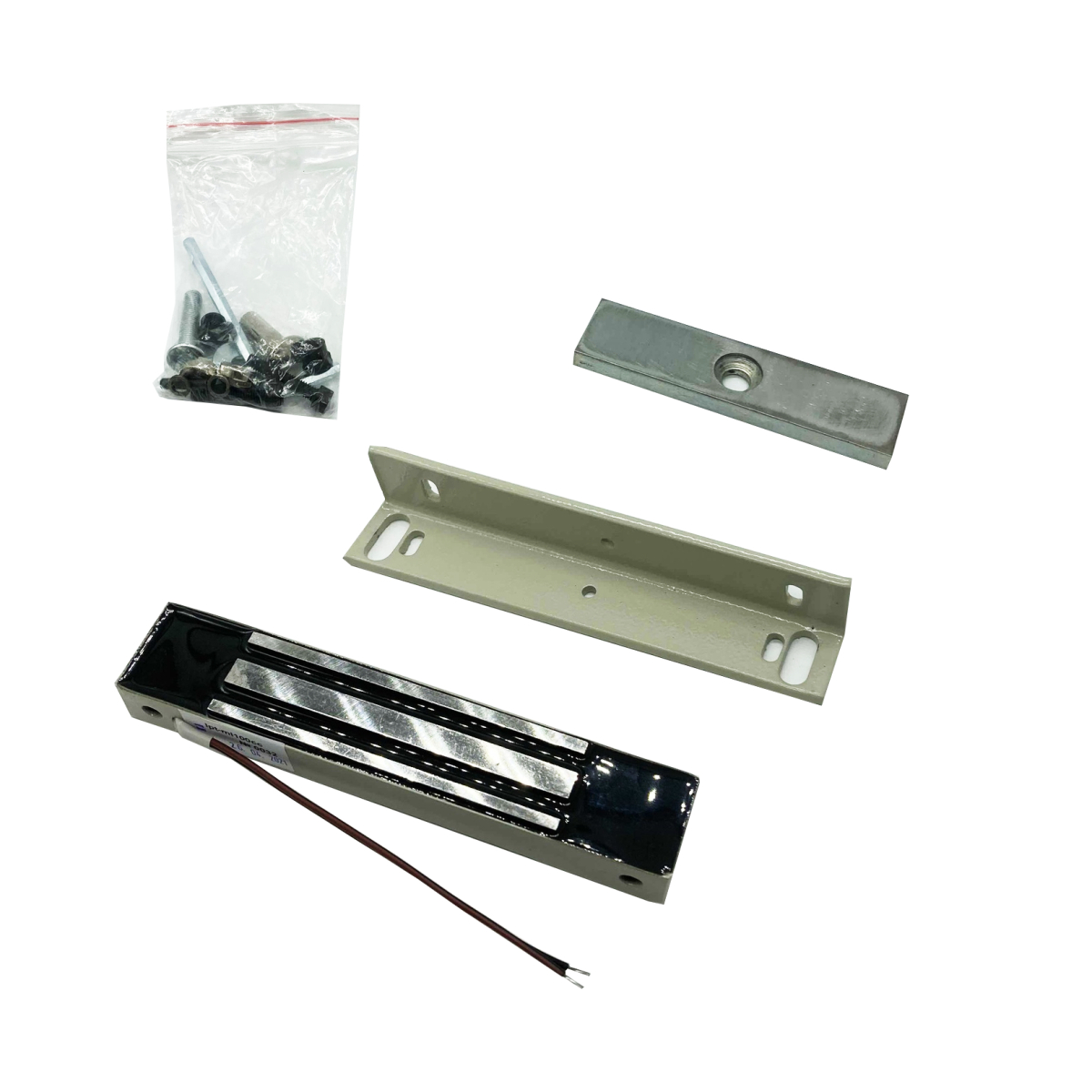 Электромагнитный замок, 12V DC, не более 0,4 A, усилие 100 кг, габаритные размеры 180x33x23 мм. Масса брутто 1600 г, уголок в комплекте. Цвет серый