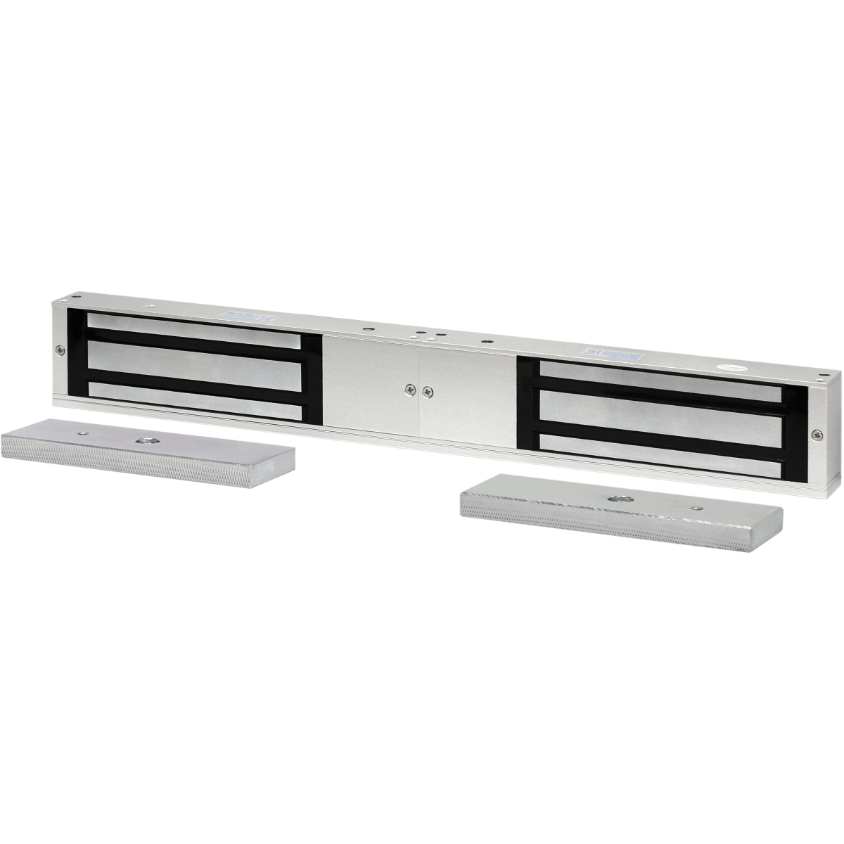Электромагнитный замок сдвоенный, мониторинг, СИД, внутреннее исполнение, 12 VDC / 1 А или 24VDC / 500 мА, усилие 2x500 кг. Сдвоенный электромагнитный замок для установки на двустворчатые двери, контролируемые СКУД, а также на двери эвакуационных выходов. Он состоит из двух зеркально выполненных частей, каждая из которых удерживает створку в закрытом состоянии при усилиях на отрыв до 500 кг. Датчики Холла, встроенные в обе части электрозамка, позволяют выполнять мониторинг его состояния, специальные релейные выходы обеспечивают информирование о тревоге при попытке взлома устройства, а особая конструкция обеспечивает преодоление остаточной намагниченности. При использовании опциональных адаптеров можно монтировать этот электромагнитный замок на двери, открывающиеся внутрь или наружу, а также выполненные из стекла.