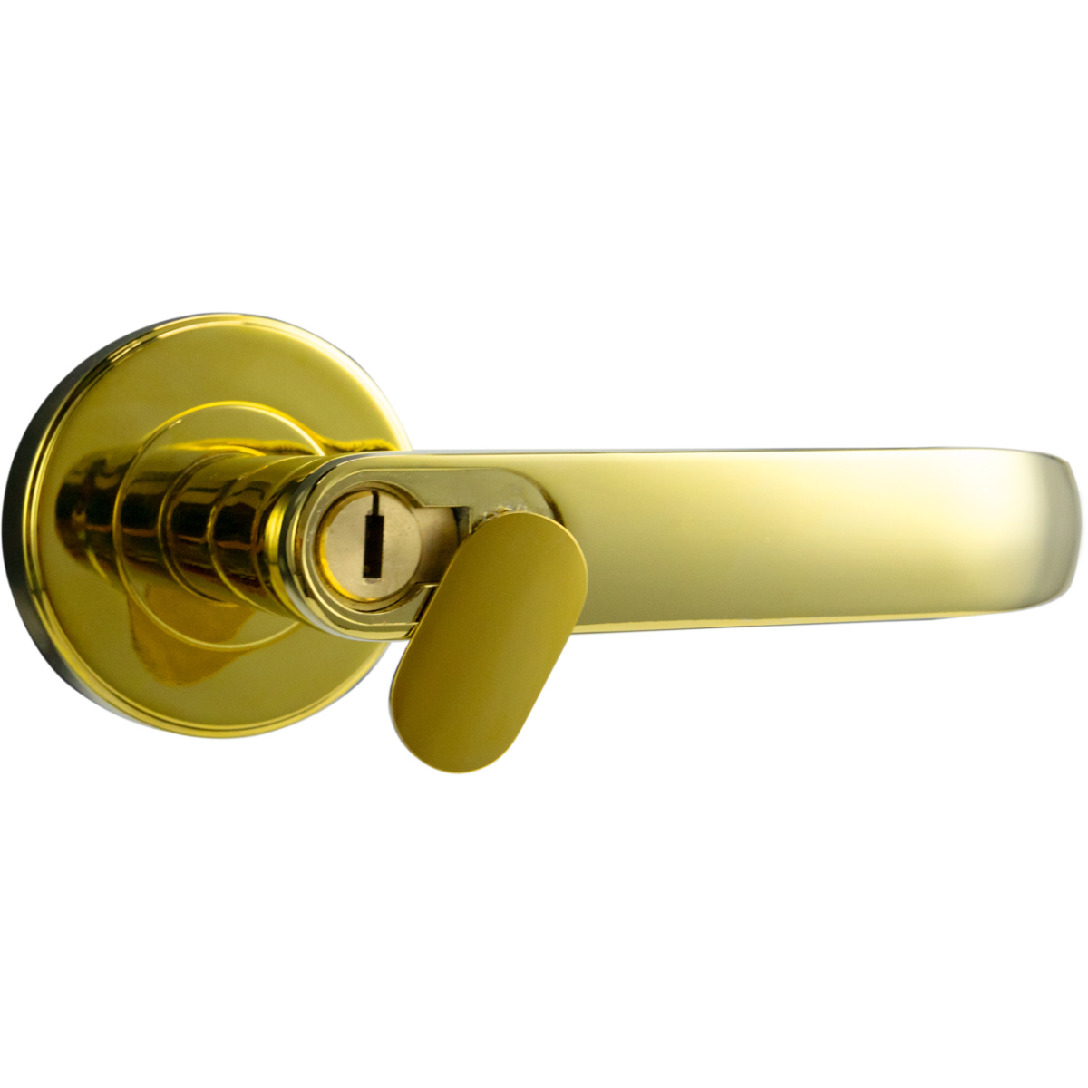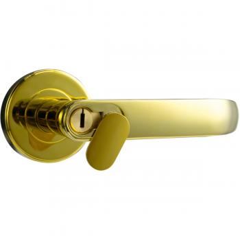 Замок гостиничный беспроводной. Дизайн "Золото" (гальваника), материал: сплав цинка. Раздельные ручки, скрытый считыватель. Врезной механизм ANSI, ригель - сталь. Онлайн, BLE. *Доступна версия с выносным считывателем. Онлайн, BLE