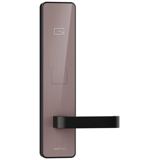 Замок гостиничный беспроводной. Дизайн "Золотистый кофе", материал: алюминий на стальном шасси, покрытие методом IMD Врезной механизм типа Euro, ригель и защелка - нержавеющая сталь