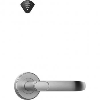 Замок гостиничный беспроводной. Дизайн "Матовое серебро" ("сатиновый никель, гальваника"), материал: сплав цинка. Раздельные ручки, скрытый считыватель Врезной механизм ANSI, ригель - сталь.