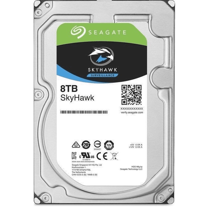 Жесткий диск специализированной серии SkyHawk предназначен для использования в крупных системах видеонаблюдения (многодисковые сервера от 16 HDD и большое количество каналов, записываемых на HDD, – до 64 камер). Объем жесткого диска – 8 Тбайт, форм-фактор – 3.5 дюйма, интерфейс – SATA 6 Гбит/с. Кэш-память — 256 Мбайт. Средняя потребляемая мощность в рабочем режиме – 8.73 Вт. Габаритные размеры устройства (ШхВхД) 101.85x26.11x146.99 мм, вес – 716 г.