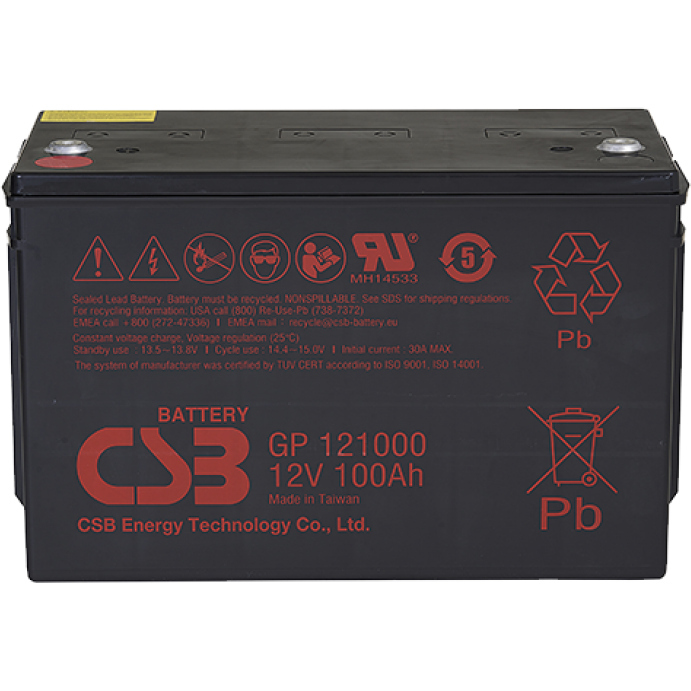 Аккумулятор 12В, 100Ач, общего применения со сроком службы 5 лет в буферном режиме или более 260 циклов заряда-разряда в циклическом режиме при 100% разряде. Как и все батареи CSB, она перезаряжаемая, высокоэффективная и не требующая обслуживания. Благодаря специальной формуле производства свинцово-кальциевого сплава и технологиям изготовления - уменьшается процесс газообразования.