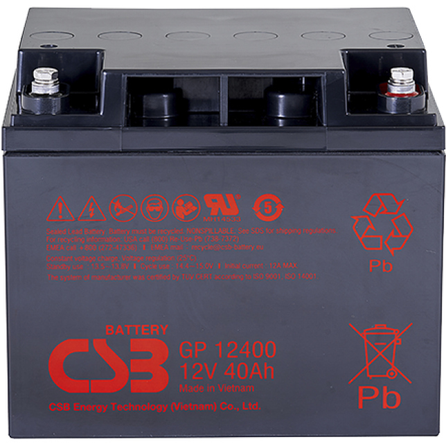 Аккумулятор 12В, 40Ач, общего применения со сроком службы 5 лет в буферном режиме или более 260 циклов заряда-разряда в циклическом режиме при 100% разряде. Как и все батареи CSB, она перезаряжаемая, высокоэффективная и не требующая обслуживания. Благодаря специальной формуле производства свинцово-кальциевого сплава и технологиям изготовления - уменьшается процесс газообразования.