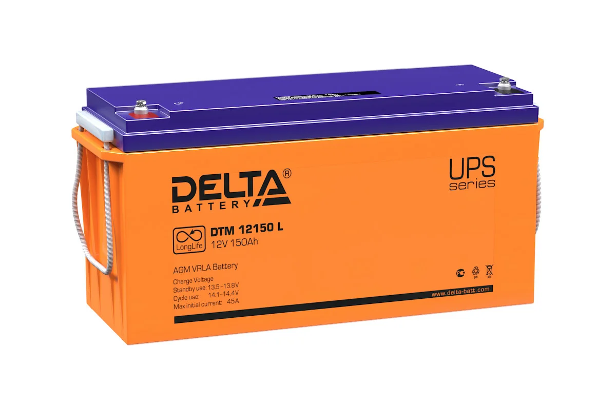 Батарея аккумуляторная Delta DTM 12150 L используется в терминалах самообслуживания, системах отопления, тревожного оповещения, источниках бесперебойного питания и резервного энергоснабжения. Относится к серии Long Life со сроком службы аккумулятора до 12 лет.