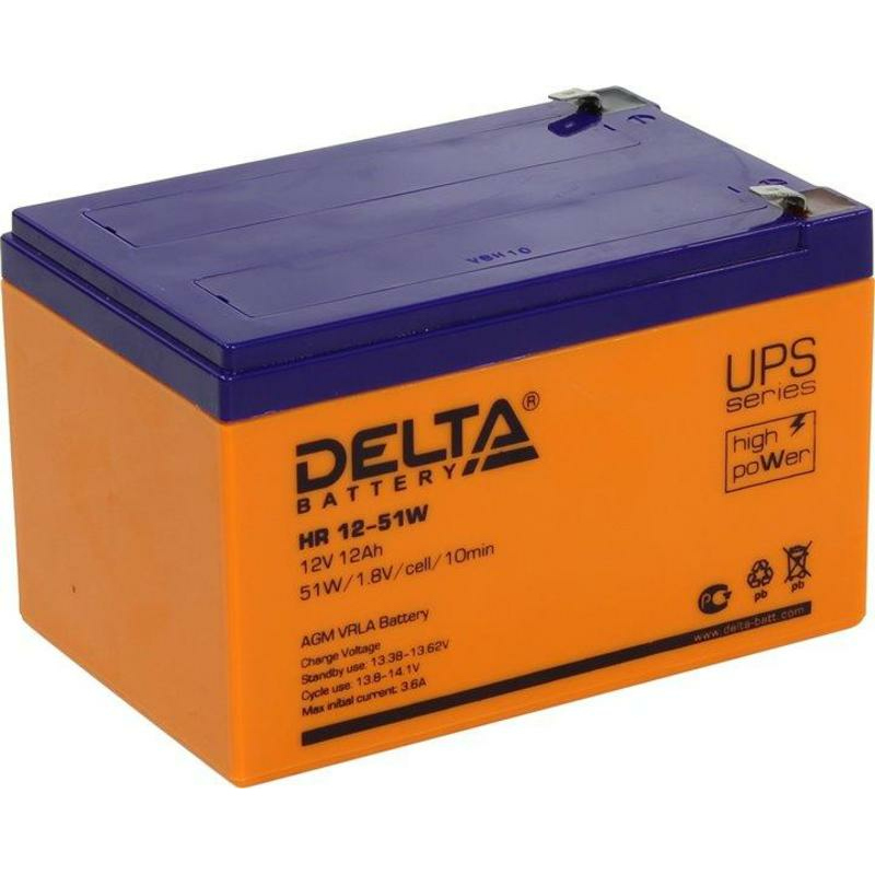 Герметизированный VRLA cвинцово-кислотный аккумулятор напряжением 12В и емкостью 12Ач изготовлен по технологии AGM (с микропористым заполнителем, пропитанным электролитом). Корпус изготовлен из негорючего ABS пластика. Срок службы аккумулятора достигает 8 лет. Аккумулятор относится к линейке DELTA UPS series и предназначен для работы в системах бесперебойного питания (ИБП), системах связи, ЦОД. Обладает низким внутренним сопротивлением и высокой энергоотдачей.