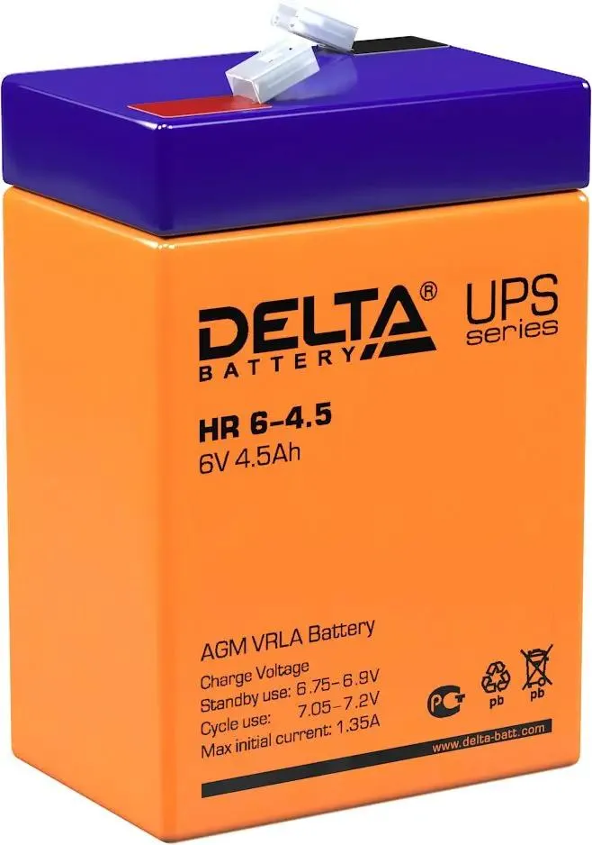 Батарея аккумуляторная Delta HR 6-4.5 используется в медицинском оборудовании, системах отопления, солнечной и ветроэнергетики, источниках бесперебойного питания и резервного энергоснабжения. Батарея изготовлена по технологии AGM. Легированные кальцием свинцовые пластины обеспечивают низкий саморазряд, высокую прочность решетки. Корпус аккумулятора выполнен из пластика ABS, который не горит. Батарея необслуживаемая, не требует долива воды.