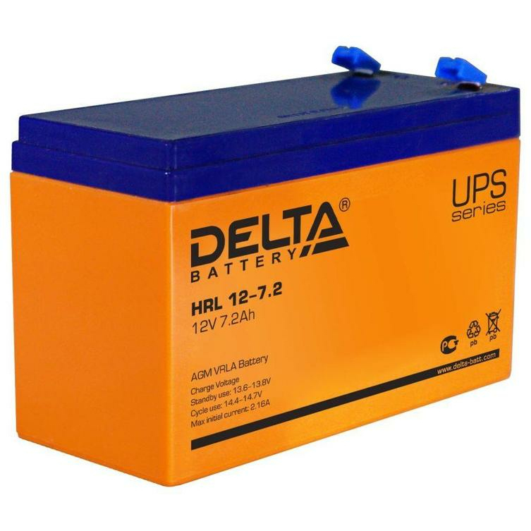 Герметизированный VRLA cвинцово-кислотный аккумулятор напряжением 12В и емкостью 7.2Ач изготовлен по технологии AGM (с микропористым заполнителем, пропитанным электролитом). Корпус изготовлен из негорючего ABS пластика. Срок службы аккумулятора достигает 12 лет. Относится к линейке DELTA UPS series и предназначен для работы в системах бесперебойного питания (ИБП), системах связи, ЦОД. Обладает низким внутренним сопротивлением и высокой плотностью энергии.
