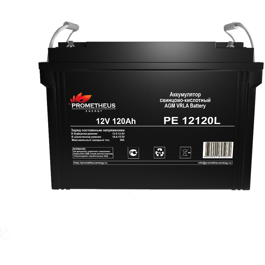 Prometheus Energy свинцово-кислотный аккумулятор PE 12120L создан по технологии AGM, с абсорбированным электролитом и увеличенным сроком службы. Предлагаемый аккумулятор является не обслуживаемым. Он герметизирован, а образующийся газ рекомбинируется. Долив жидкости не требуется. Корпус аккумулятора изготовлен из негорючего ABS пластика. Емкость аккумуляторной батареи для ИБП составляет 120 Ah, а рабочее напряжение 12 V. Устройство обладает низким саморазрядом (до 3%). Срок службы достигает 10 лет.