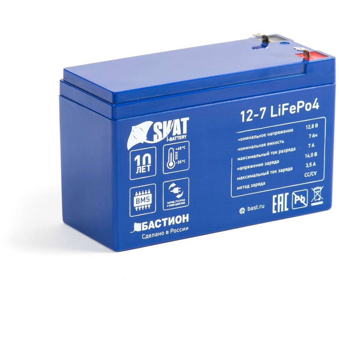 12 В, 7 Ач Li-Ion АКБ, на базе LiFePo4 элементов IFR 26650, структура 2P4S. Номинальное напряжение 12,8 В, напряжение заряда до 14В Максимальный ток разряда до 7 А; ток заряда до 3,5А. Встроенная система контроля BMS, защита от глубокого разряда и перезаряда. Температурный режим при разряде от -20 до + 60°C, при заряде от 0°C. Аналог герметичного АКБ 7Ач (AGM). Размер корпуса 150*65*93. Вес 0,9 кг Корректная работа в ИБП вместо свинцово-кислотного АКБ