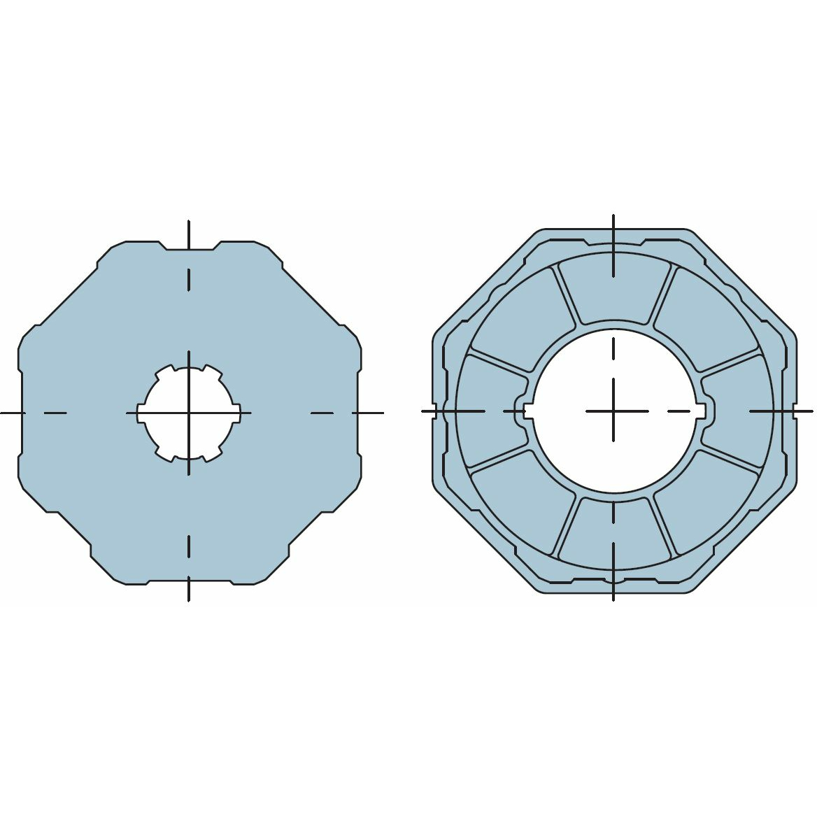 Адаптер для октогонального вала 102 мм. Совместим с приводами Nice серии Era размер M Ø45 мм. Восьмигранный 102x2,5 мм, колесо + кольцо.