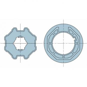 Адаптер для октогонального вала 70 мм. Совместим с приводами Nice серии Era размер M Ø45 мм. Восьмигранный 70x(1÷1,5) мм, колесо + кольцо.