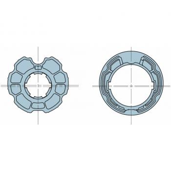 Адаптер для круглого вала 70мм с наклонным пазом. Совместим с приводами Nice серии Era размер M Ø45 мм. С наклонным пазом 70x0,9 мм, колесо + кольцо.
