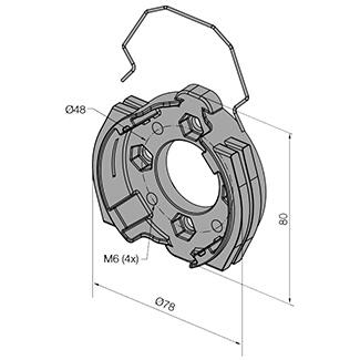 Крепление алюминиевое маркизное с 4 отверстиями M6 и 4 шестигранными посадочными местами под гайки M6. 4 резьбы M6 межцентровое 48мм, 4 посадочных места под гайки M6 межцентровое 48мм, для приводов L