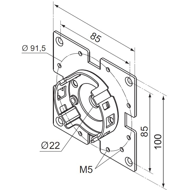 Компактное крепление, c фланцем 100x100 мм. Для приводов серии Era M 45 мм, без системы аварийного ручного управлени