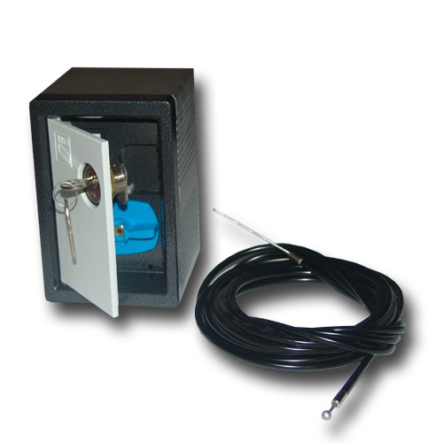 Внешний разблокиратор в корпусе с ключом и кнопкой для устройств серии ATI и FERNI, длина троса 5 метров, которым пользуются в случае пропадания электропитания. Применение внешнего разблокиратора дает возможность управлять воротами удаленно. Данная модель допускает как врезную, так и накладную установку. В первом случае в стене делается отверстие по размеру пластикового корпуса устройства. Во втором случае крепление осуществляется с помощью крепежа, поставляемого в комплекте. Монтаж устройства абсолютно не сложен, а принцип работы очень прост. Работает следующим образом: одним концом трос крепится к ручке разблокировки, другим концом - к системе разблокировки привода, передавая усилие на привод.