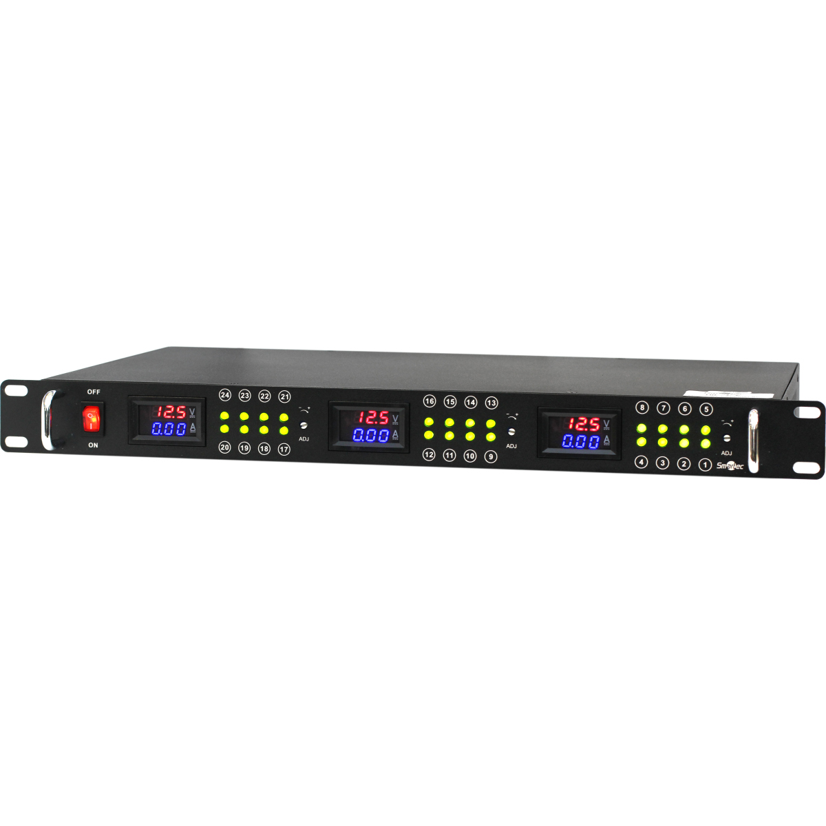Б.п. 12 VDC/45 A, 24 канала, цифровой дисплей, корпус в стойку 1U, черный