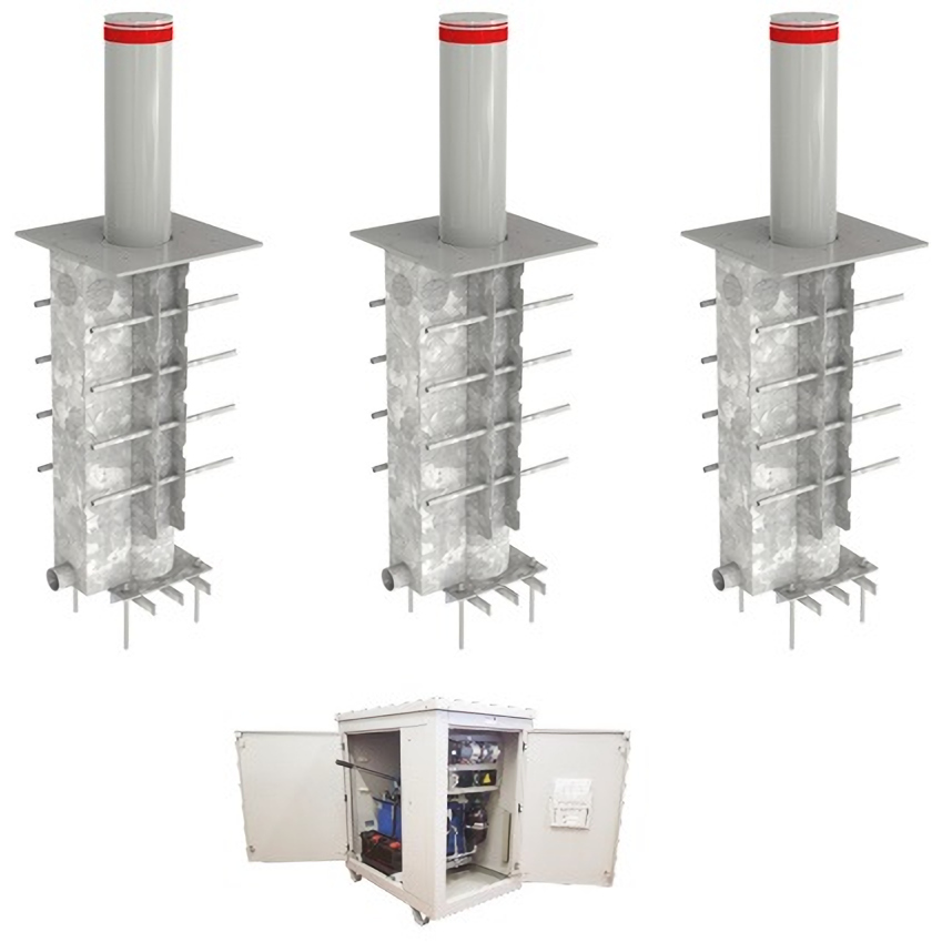 Блокиратор автоматический выдвижной серии HBD Anti-terror Heavy Duty K12. В комплекте 3 болларда, шкаф управления с рукавом высокого давления 10 метров и межблочными рукавами 1,2 метра, датчик уровня масла, ручной аварийный насос. Столбы оборудованы зуммером и светодиодной индикацией. Сертифицирован в соответствии с ASTM F2656-07 at M50 (K-12) / 80 km/h (50 mph). Разработан и изготовлен в соответствии с IWA 14-1: [N3C] / 7200 / 80 km/h (50 mph), PAS68: [N3] / 7500 / 80 km/h (50 mph).