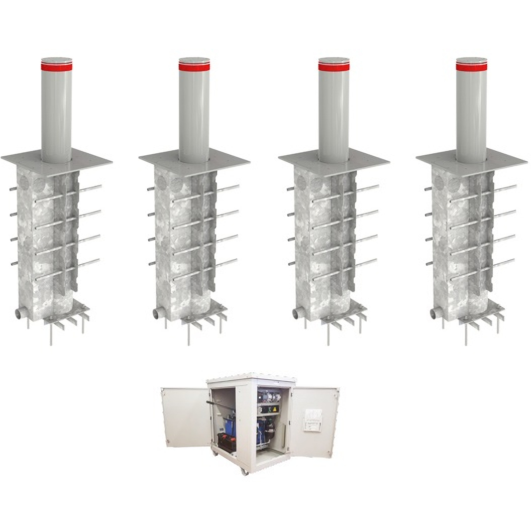 Блокиратор автоматический выдвижной серии RBD Reinforced усиленный K4. В комплекте 4 болларда, шкаф управления с рукавом высокого давления 10 метров и межблочными рукавами 1,2 метра, ручной аварийный насос. Столбы оборудованы зуммером и светодиодной индикацией. Разработан и изготовлен в соответствии с IWA 14-1: N3C / 7200 / 48 km/h (30 mph), PAS68: N3 / 7500 / 48 km/h (30 mph) и ASTM F2656 M, C7 (K-8) / 6800, 7200 / 48 km/h (30 mph).
