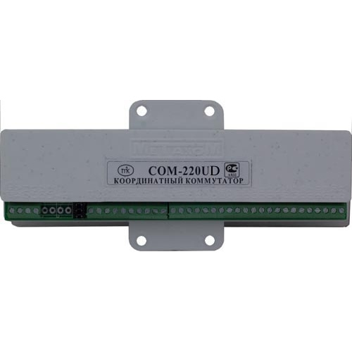 Коммутатор координатный COM-220UD предназначен для коммутации абонентских линий в домофонных системах на базе вызывных панелей МЕТАКОМ и рассчитан на подключение до 220-ти абонентов. Индекс D в названии коммутатора означает возможность подключения двух вызывных панелей.