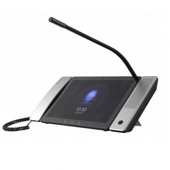 Пульт консьержа. CMOS 2 Мп камера; сенсорный 10" цветной TFT LCD экран с разрешением 1024*600; физическая кнопка; интерфейсы: 2 RJ-45 10/100/1000 Mbps, 1 HDMI, 1 RS-485, 3 USB, 2 реле выхода, 2 тревожного выхода , 4 аудио-входа & 4 аудио-выхода.