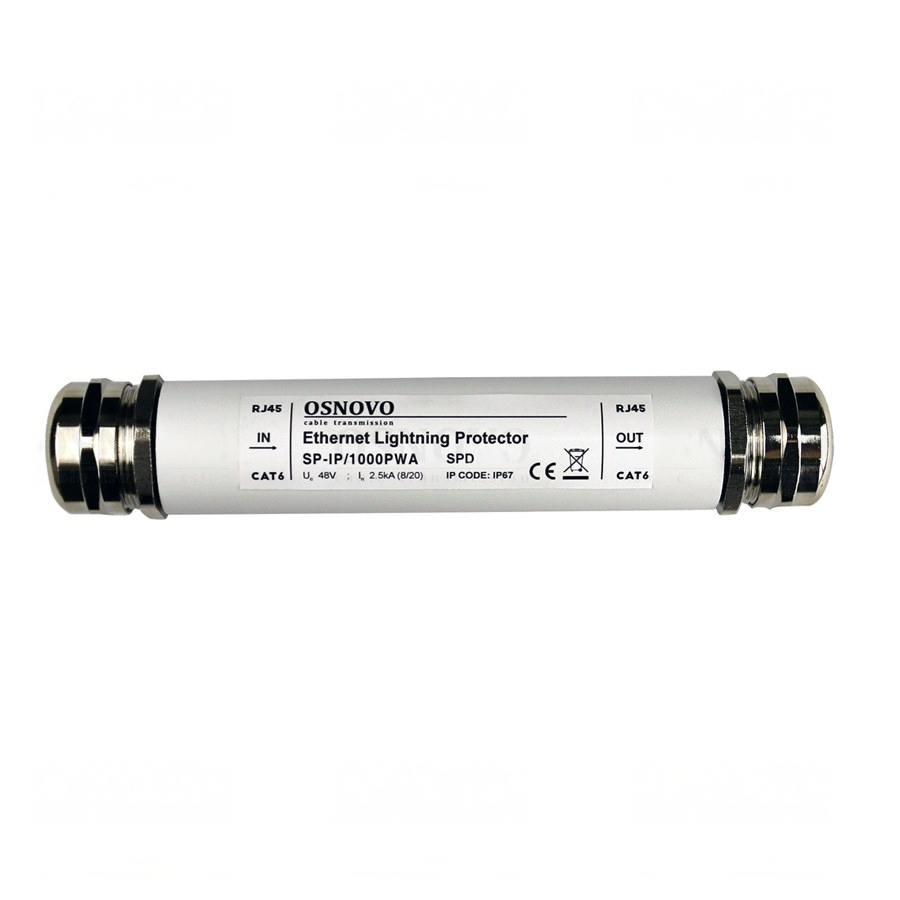 Уличное устройство грозозащиты для локальной вычислительной сети (скорость до 1000 Мб/с) с защитой линий PoE (af/at, методы A + B, контакты 1/2, 3/6, 4/5, 7/8). Двухступенчатая защита. Максимальное длительное рабочее напряжение (Uс) DC58V. Номинальный ток разряда (8/20 мкс, In) 2,5kA. Суммарный ток разряда (8/20 мкс, Itotal) 10kA. Время отклика 1нс. 1 вход (RJ45-мама), 1 выход (RJ45-мама). Промышленное исполнение: алюминивый корпус, класс защиты IP67.Крепление на DIN-рейку. Размеры (ШхВхГ): 170x34x40мм. Рабочая температура: -40…+80°С.