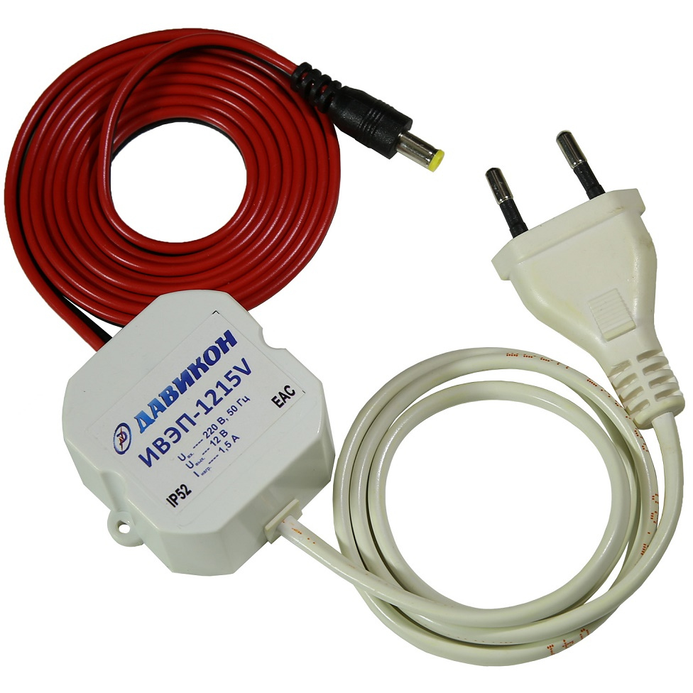 Источник вторичного электропитания, электронная защита от КЗ, перегрузки по току и перегрева; защита потребителя от перенапряжения; защита от перенапряжения по входу, низкие пульсации выходного напряжения, защита потребителя от импульсного напряжения до 4000 В. U=12B, Iном=1,5 А, Iмакс.=2,0 А, выходной шнур 12В с разьемом для питания видеокамер. 5,5х2,1х9, малогабаритный размер 25х50х50мм.