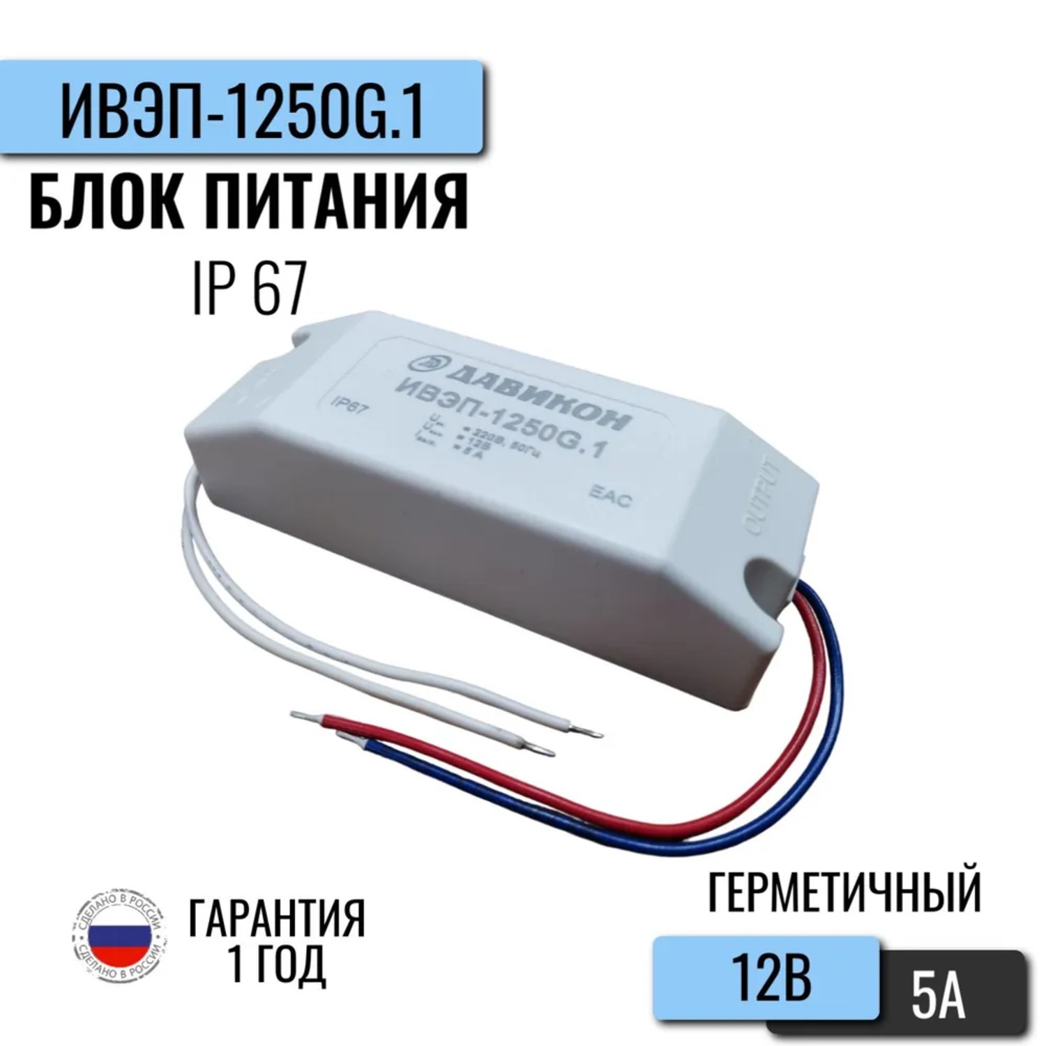 (12В; 5А) – в пластиковом корпусе АК (Uном=12,5В); Степень защиты - IР67; Размеры 115х45х30; Вес:0,35 кг.