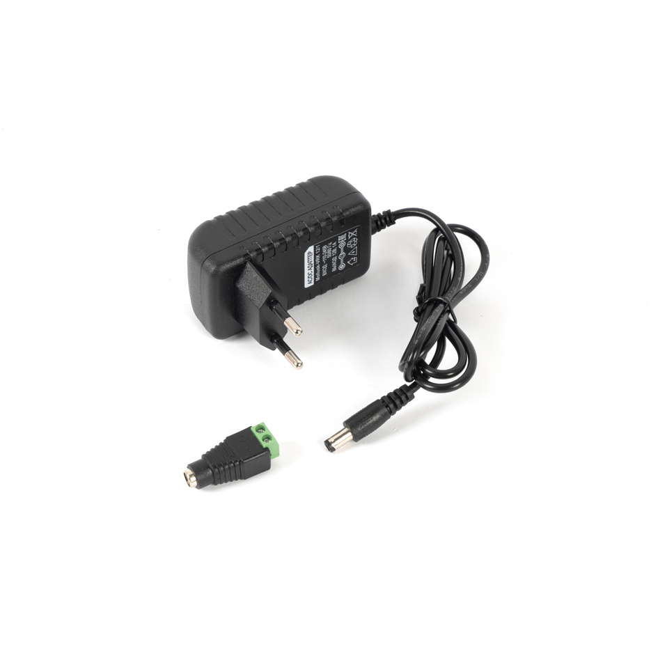Бюджетный источник питания 12В, 1А. Напряжение питающей сети 110-245 В переменного тока. Защита выхода от КЗ. Пластиковый корпус IP20. Подключение питания - сетевая вилка, подключение нагрузки - штекер 5,5х2,1 мм, переходник на клеммы в комплекте. Габаритные размеры - 25х75х75 мм.