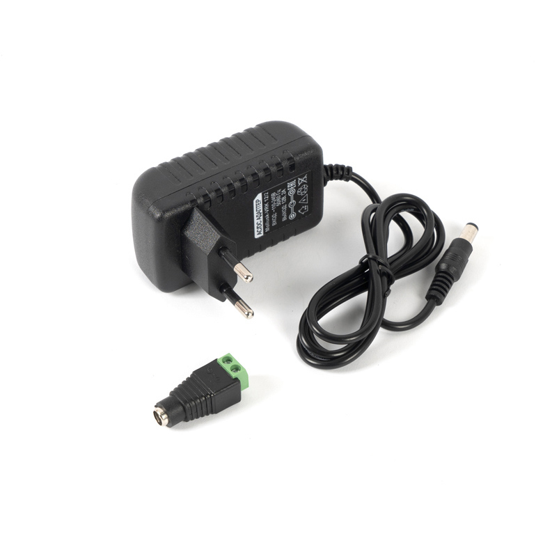 Бюджетный источник питания 12В, 2А. Напряжение питающей сети 110-245 В переменного тока. Защита выхода от КЗ. Пластиковый корпус IP20. Подключение питания - сетевая вилка, подключение нагрузки - штекер 5,5х2,1 мм, переходник на клеммы в комплекте. Габаритные размеры - 25х75х75