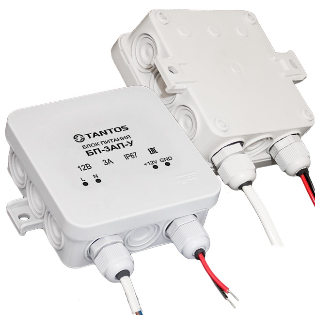 Источник вторичного электропитания импульсный 12В, 3А. Электронная защита от короткого замыкания и перегрузки по току. Корпус - герметичный (уличный) пластиковый, IP67, -35...+35°С, 100×35×100 мм.