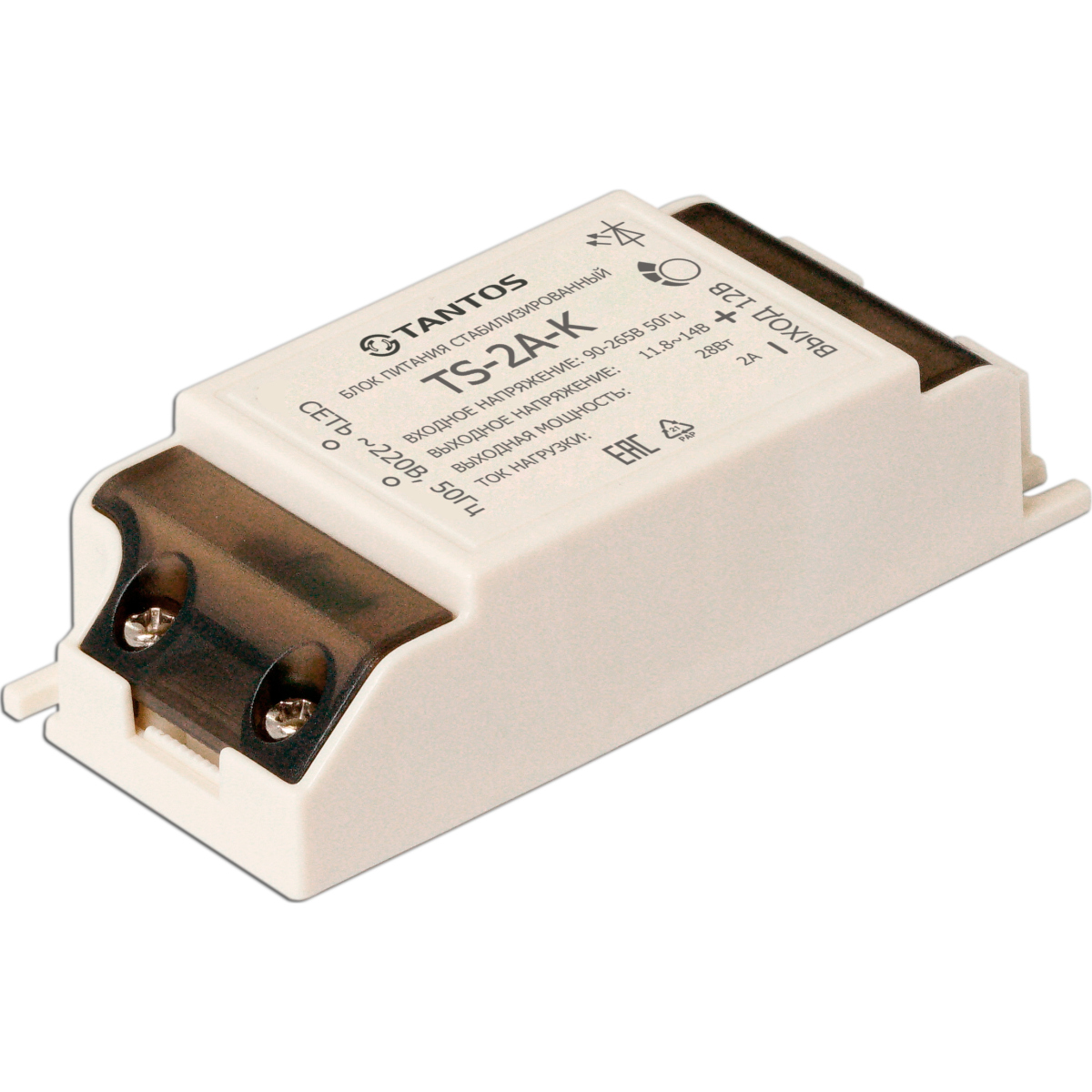 Блок питания стабилизированный 12В, 2А, 90-265В 50Гц, пластиковый корпус.