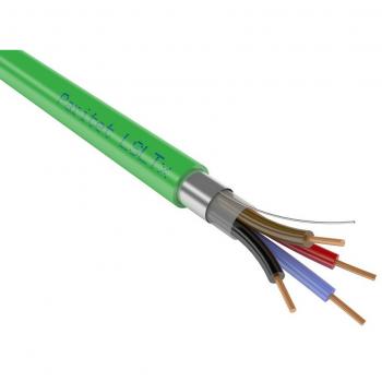 Кабель пучковой скрутки экранированный с медными однопроволочными жилами, с изоляцией пониженной пожарной опасности с низким дымо- и газовыделением и низкой токсичностью продуктов горения, 4х0,5 мм, внешний диаметр 4 мм, диапазон рабочих температур -40...+70°С, цвет оболочки зеленый