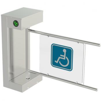 Турникет-калитка МГН моторизованная SALOON 705. Корпус - нержавеющая сталь AISI 304. Оснащена платой управления и светодиодными указателями прохода. Сервопозиционный электропривод створки с определением препятствий и автоматической разблокировкой при отключении электроэнергии. Створка 900 мм с информационной вставкой. Время открытия 2.2 сек. Встроенный блок питания. IP54.