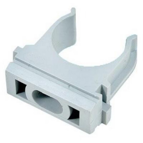Крепление для труб ПВХ с защелкой D = 25 мм. Цвет - серый RAL 7035. Количество в упаковке 100 шт.