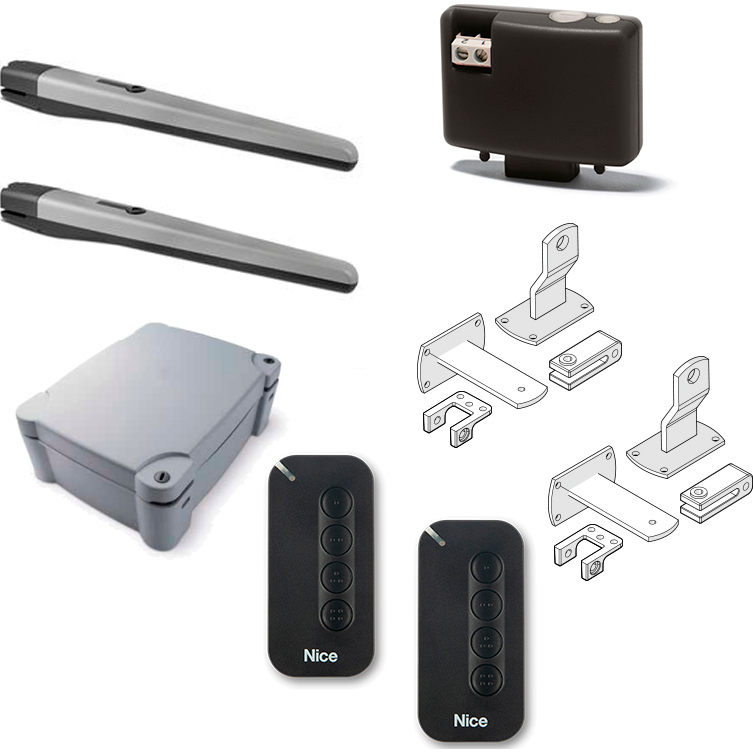 Комплект для распашных ворот TO5016PPLA16BDKLT. Состав комплекта: привод TO5016P (2 шт.), приёмник OXIBD (1 шт.), пульт управления MYGO4 (2 шт.), Блок управления MC800 (1 шт.), регулируемый кронштейн PLA16 (2 шт.)