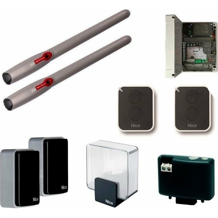 Комплект для распашных ворот WG3524HSBDKCE. Состав комплекта: Привод WG3524HS - 2 шт, блок управления МС824H - 1 шт, приемник OXIBD - 1 шт, фотоэлементы EPMB - 1 пара, лампа ELDC - 1шт, пульт управления INTI2R - 2 шт.