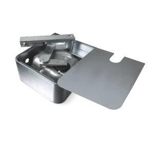 Фундаментная коробка из нержавеющей стали, с механическим упором на открытие для для распашных ворот с подземной установкой.