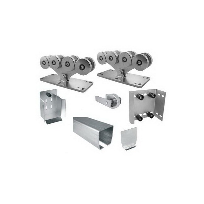 Комплект для откатных ворот до 1700 кг. Состав комплекта: 1700018 Тележка с 8 роликами "L", до 1700кг. - 2 шт. 1700020 Ролик концевой "L", без заглушки рельса. - 1 шт. 1700021 Улавливатель концевого ролика "L". - 1 шт. 1700024 Заглушка для рельса "L" - 1 шт. 1700186 Скоба направляющая верхняя с 4 роликами, 0-160 мм. - 1 шт. 1700179 Рельс направляющий "L", неоцинкованный. - 6 м