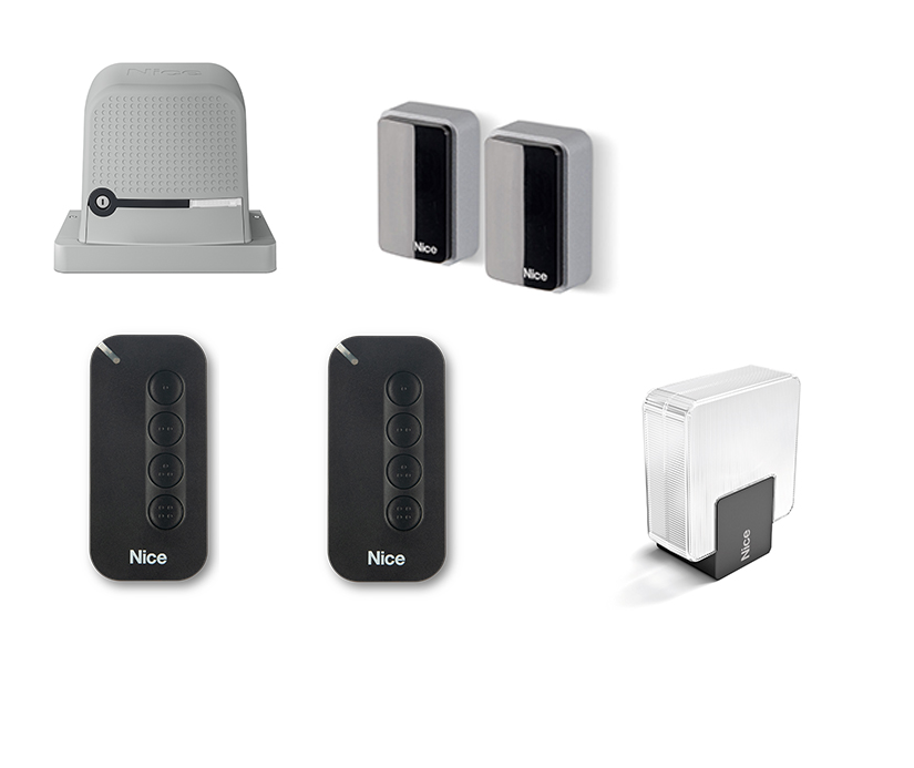 Комплект для откатных ворот RBS400BDKCE. Состав комплекта: Привод RBS400 - 1 шт.; пульт управления MYGO4 - 2 шт; фотоэлементы EPMB - 1 пара; лампа ELDC - 1 шт;