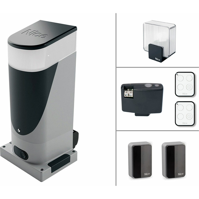 Комплект для откатных ворот SLH400BDKCE. Состав комплекта: Привод SLH400 - 1 шт, приемник OXIBD - 1 шт; пульт управления ON3EBD - 2 шт; фотоэлементы EPMB - 1 пара, лампа ELDC - 1 шт;