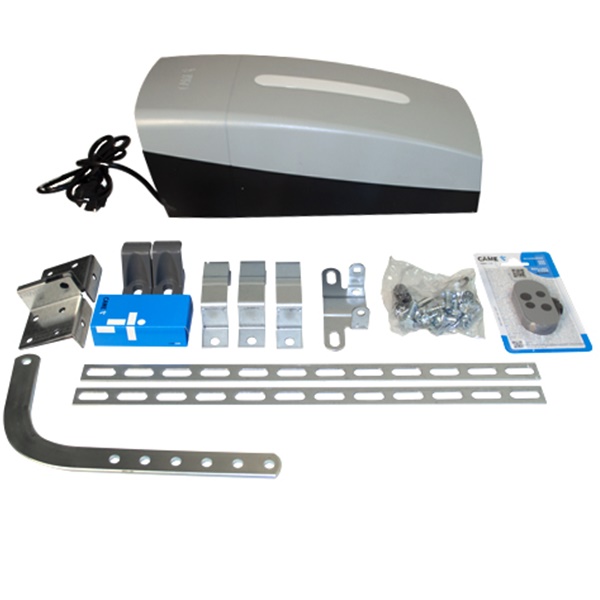 Комплект автоматики для секционных ворот на основе привода VER06DES (радиоуправление). Состав комплекта: VER06DES - Привод 24В потолочный для секционных ворот; TOP44RGR - Брелок-передатчик 4-х канальный с динамическим кодом; AF43S - Плата-радиоприемник 433.92 МГц;