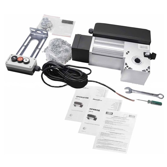 Комплект вального привода со встроенным блоком управления. Устанавливается на промышленные секционные ворота площадью до 28 м². Корпус привода обладает высоким классом защиты IP65, благодаря чему рекомендуется для установки на автомойках и других объектах с высокой влажностью воздуха и запыленностью. Удлинитель цепи до 8 м. В комплекте пост управления трехпозиционный BUTTON3, комплект крепежа.