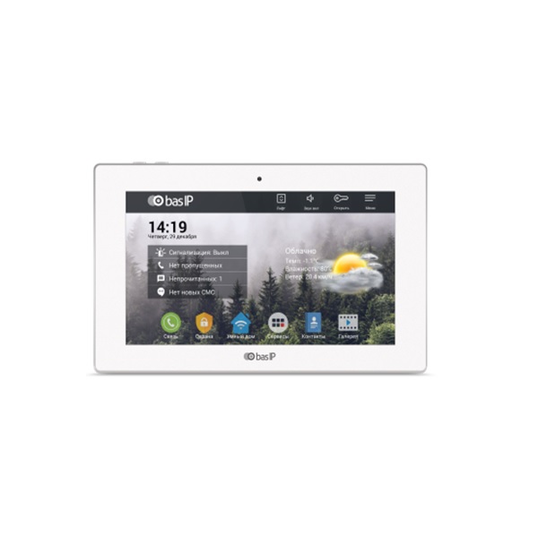 Видеодомофон индивидуальный с сенсорно-ёмкостным экраном 10" IPS, разрешение: 1280x800, c внутренней памятью (фото, видео на автоответчике), с возможностью подключения датчиков сигнализации, фоторамка, проигрыватель видеофайлов, умный дом. Без камеры. Подключение кнопки звонка. Управляемый выход при поступлении входящего звонка, возможность установки сторонних приложений и приложений для "Умного дома". Встроенный Web-браузер. Просмотр до 32 камер. Питание: PoE и + 12В (БП в комплект не входит). Поддержка: SIP P2P. Встроенный Wi-Fi (2.4GHz, IEEE 802.11 /b/g/n). Интеграция с АСКУЭ. Накладной монтаж и врезной монтаж с помощью дополнительного кронштейна. Цвет - белый.